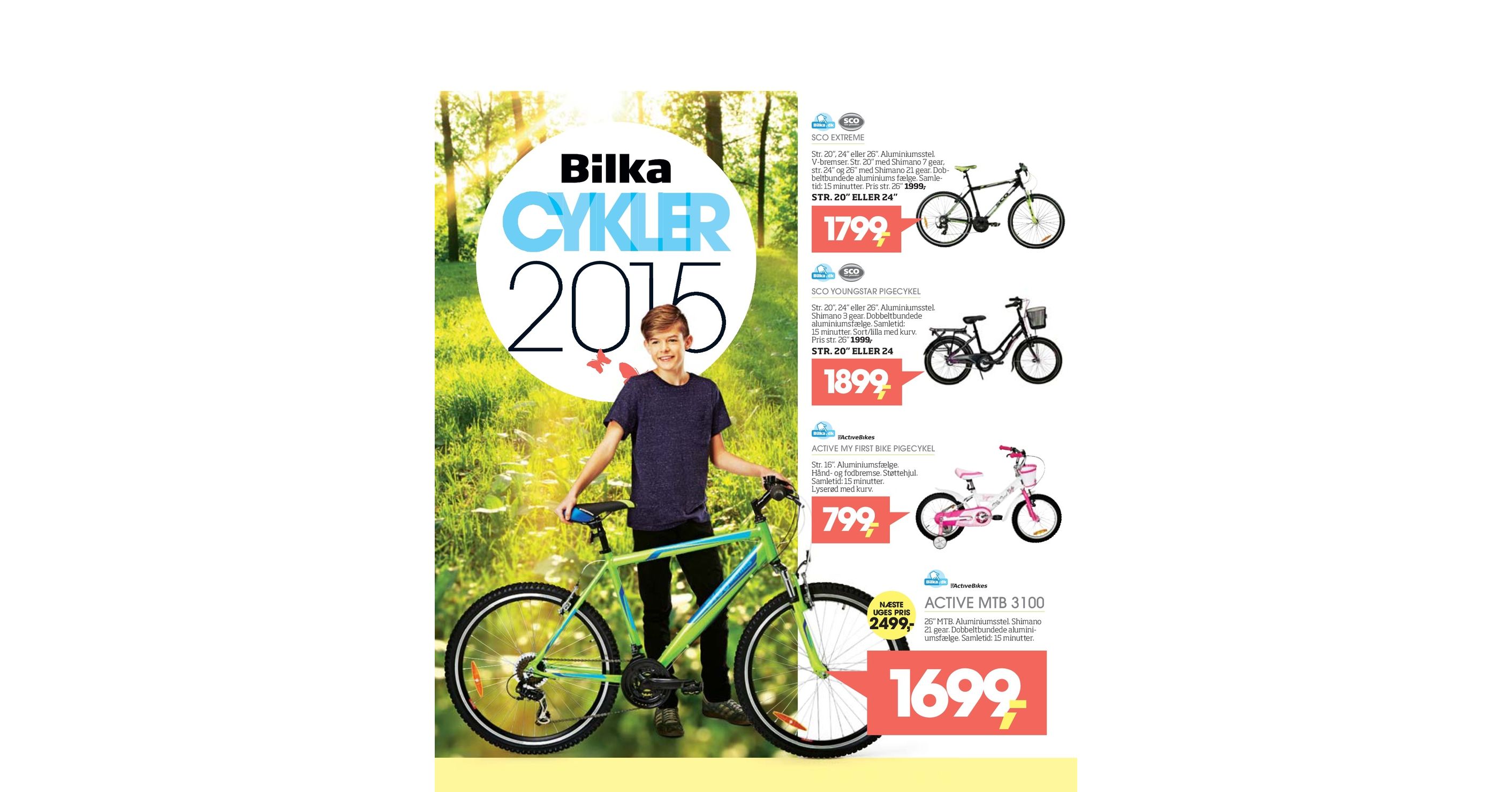 Besøg bilka.dk og vælg din nye cykel på tilbud for et sundt og sjovt alternativ... .. Design, kvalitet og pris er i fokus i sammensætningen af vores sco cykelsortiment, som er cykler i moderne dansk design og kvalitet til gode priser.